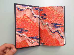 Full goatskin leather binding sewn on 5 raised cords. Decorative Japanese endpapers and a leather doublure.